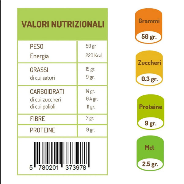 Con attivatore Chetosil™ a base di Olio MCT con percentuale C-8 al 60%, C-10 al 20% e impatto netto di carboidrati 1 gr. PERFETTO PER LA DIETA CHETOGENICA