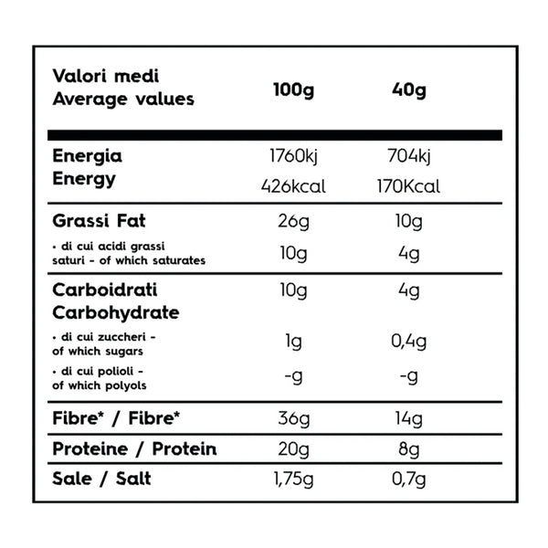 Può contenere: mandorle, nocciole, noci, arachidi, sesamo, lupini, soia, senape.