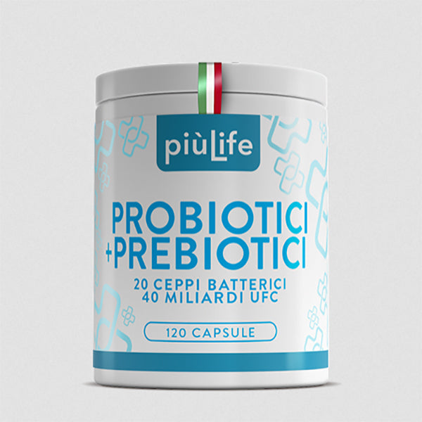 Il tuo intestino è la chiave del tuo benessere. Con Probiotici + Prebiotici piùLife sostieni il microbiota e migliori la funzione intestinale, grazie a una formula avanzata con 40 miliardi di fermenti vivi e 20 ceppi selezionati.